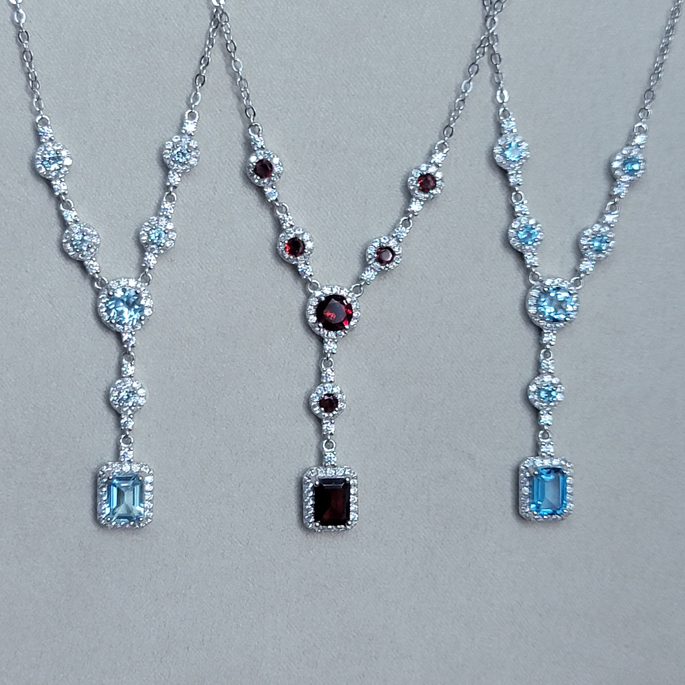 Natural Diamond Cut CZ Gemstone Necklace Sterling Silver