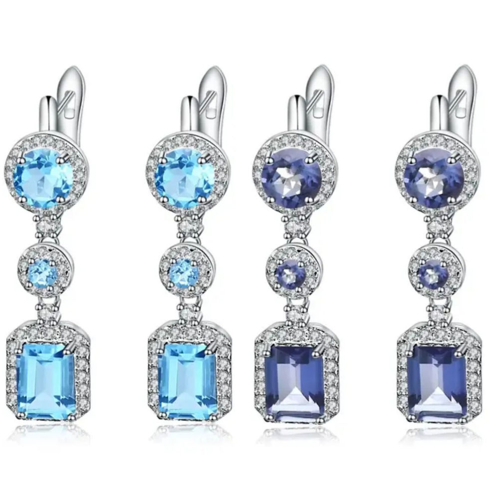Elegant Diamond Accents Swiss Blue Topaz & Mystic Quartz Earring Sterling Silver
