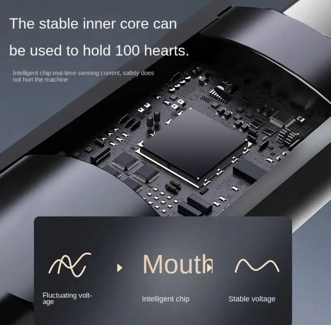 - The integrated LED display shows the current charging wattage.